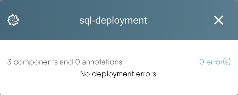 If your design fails validation checks, the modal will indicate the number of errors detected. Each error will provide specific information about the component or annotation that caused the failure. Use this detailed feedback to identify and correct the issues in your design before proceeding with the deployment.